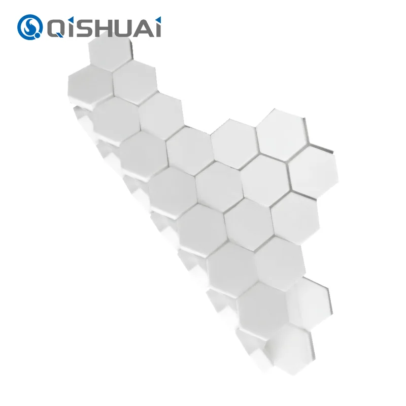 Mosaik Keramik Hex Alumina berkualitas tinggi dari Shandong Qishuai Wear-Resistant Equipment Co., Ltd., seperti diilustrasikan, menampilkan desain heksagonal khas yang membedakannya dari ubin persegi atau melingkar pada umumnya. Setiap ubin mosaik keramik alumina heksagonal memiliki tepian yang halus dan mengalir dengan detail indah yang terlihat jelas.