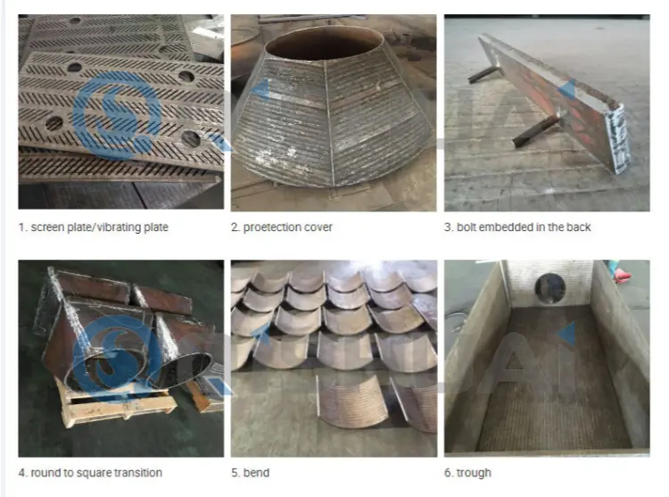 - Poros utama penghancur rol tunggal Poros penghancur rol tunggal, pengelasan overlay perbaikan pelat, saluran terak, cakram distribusi, pelapis pengumpan getar, pelapis layar getar, hopper bijih, bilah hopper, dan komponen tahan aus untuk pengangkutan terak air. Mereka secara efektif menahan abrasi dari terak, bijih, dan material bersuhu tinggi lainnya, mengurangi waktu henti pada peralatan pembuatan baja dan memastikan operasi produksi yang stabil.