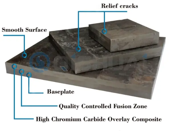 | Penggerusan material yang parah dan keausan yang cepat | 1. Lapisan kekerasan tahan aus (HRC)2. Jenis dan distribusi karbida | 1. Lapisan paduan kekerasan tinggi (HRC 60+)2. Struktur tahan aus yang padat dan seragam | Pemotongan, pengelasan, pemasangan baut |